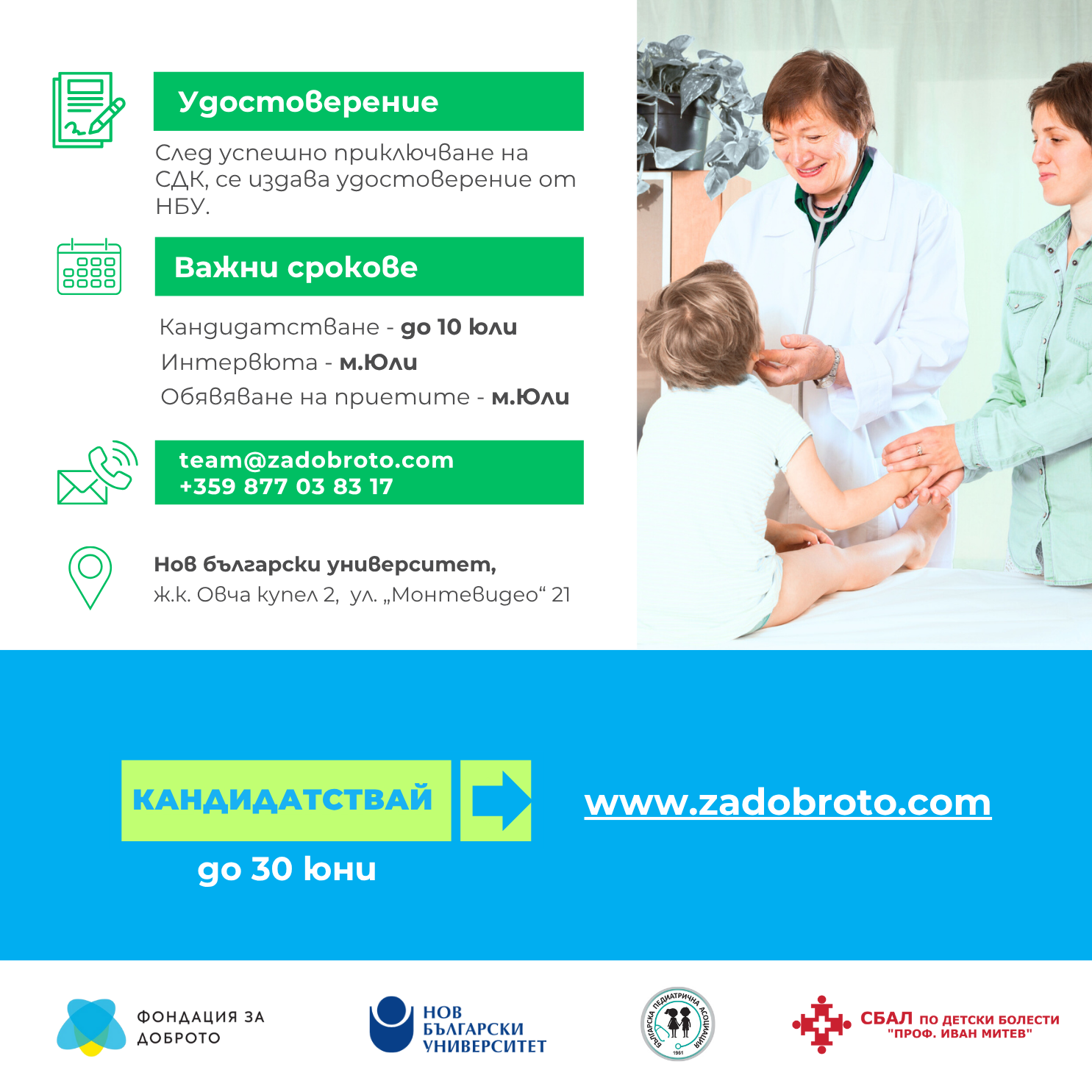 В обучението по педиатрия участват и хонорувани преподаватели от Клиника по детска кардиология, МБАЛ НКБ.